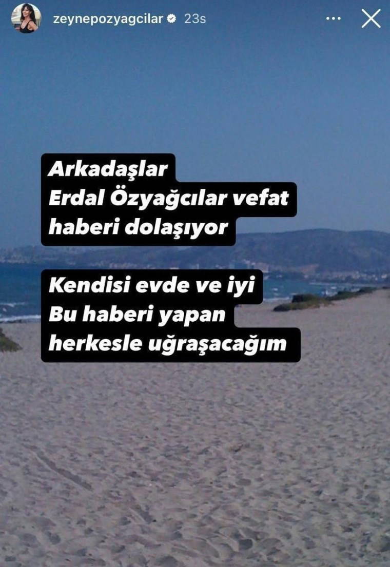 "Arkadaşlar, Erdal Özyağcılar vefat haberleri dolaşıyor. Kendisi evde ve iyi. Bu haberi yapan herkesle uğraşacağım."