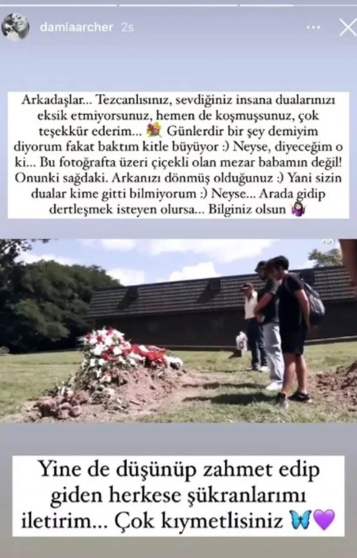 Damla Koray, geçmiş aylarda sosyal medyada gündem olan mezarlık görüntüleriyle ilgili açıklama yaparak, "Bu fotoğrafta üzeri çiçekli olan mezar babamın değil" diyerek yanlış anlaşılmaları düzeltmişti. Babasının mezarını ziyaret edenlere teşekkür eden Koray, duyarlılık gösteren herkese minnettar olduğunu belirtti.