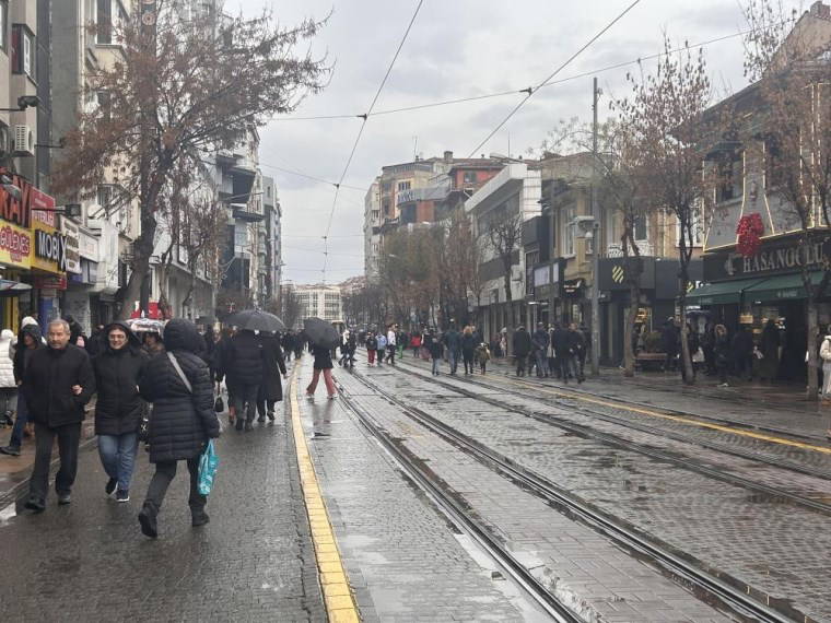 Eskişehir'de aniden etkili olan gök gürültülü sağanak yağış zorluk yaşatırken, sokağa şemsiyesi olmadan çıkan vatandaşların ise yağmurdan korunmak için dükkan önlerine sığındığı görüldü.