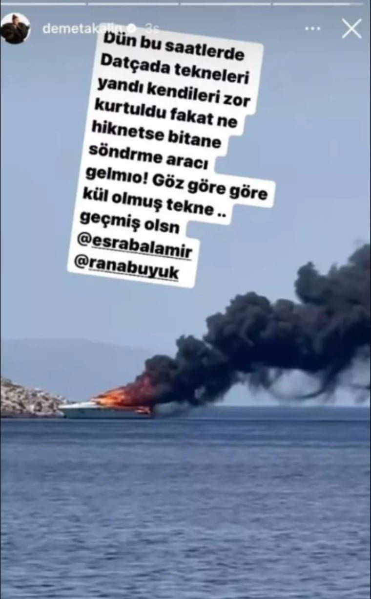 Balamir ve arkadaşları, ölümden döndü. Demet Akalın da teknenin yandığı halini paylaştı ve geçmiş olsun dedi.
