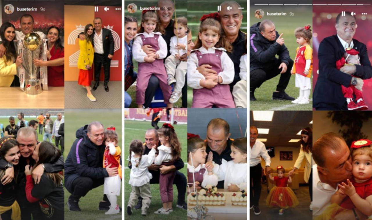 Terim'in diğer kızı Buse Terim de herhangi bir açıklama yazmadan peş peşe babası ve kızlarıyla olan aile pozlarını paylaştı.