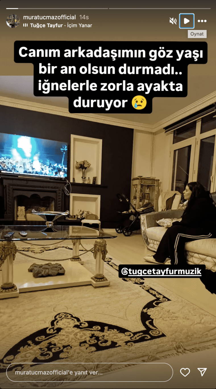 Tuğçe Tayfur’un yakın arkadaşı Murat Uçmaz, sosyal medya hesabından, Tuğçe’nin babasının konser görüntülerini izlerken çekilmiş bir fotoğrafını paylaştı.