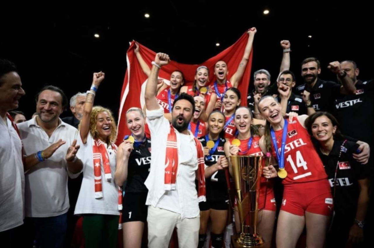 Filenin Sultanları'nı yalnız bırakmayan Tarkan, Türkiye Kadın A Milli Takımı'nın kupayı kazanmasının ardından sporcularla birlikte fotoğraf çektirdi.