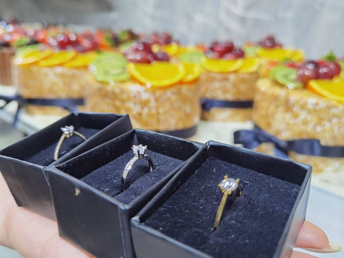 İş yeri sahibi Bünyamin Öztürk, 1992 yılından bu yana faaliyet gösterdiklerini belirterek, "14 Şubat sevgililer gününde sizlerle beraberiz. 92'den beri bu işi sürdürmekteyiz. Geçen sene yaptığımız kampanyada 150 pastadan birinin içine tek taş yüzük koymuştuk. Bu sene ise 150 pastadan sadece 3 tanesinin içine 3 adet tektaş yüzük koyduk. Sizde kendinize güvenip kendi şansızınıza inanıyorsanız, sizleri bekliyoruz. Yüzükleri hazırlamış olduğumuz pastaların içine koyuyoruz. ve vitrinlerimizde satışa sunuyoruz. Pastalarınızı yerken sizden ricamız çok dikkatli olunuz. Pastanızın içerisinden yüzük çıkabilir" diye konuştu.