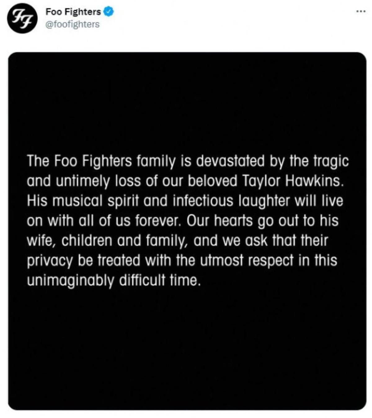 Foo Fighters’ın kurucusu Dave Grohl ise kariyerinde ikinci kez bir müzik grubundaki arkadaşının kaybını yaşadı. Grohl, 1994’te intihar eden Kurt Cobain ile birlikte Nirvana’da görev alıyordu.