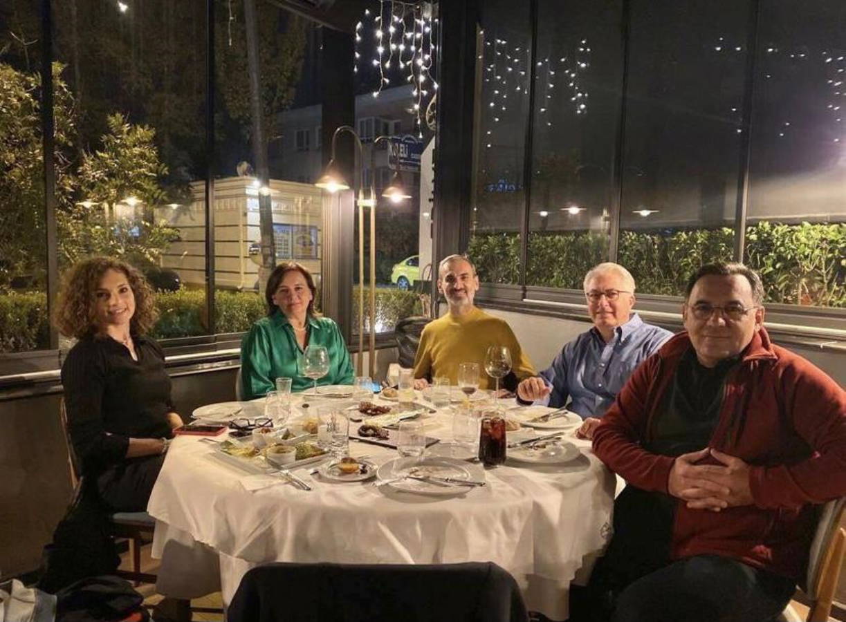 Şentürk'ün paylaşımında gazeteciler Nevşin Mengü,Çiğdem Toker, Deniz Zeyrek ve Murat Yetkin ile aynı masada oldukları görülüyor.