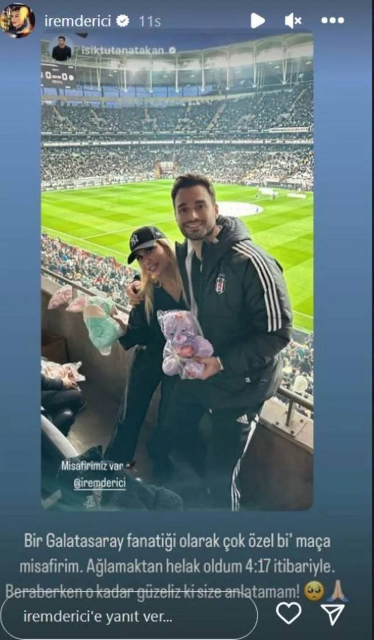 Derici paylaşımında "Bir Galatasaray fanatiği olarak çok özel bir maça misafirim. Ağlamaktan helak oldum" dedi.