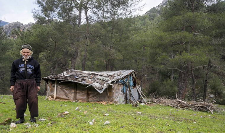 Ulupınar Mahallesi Karadere bölgesindeki dağda kalan Mehmet Çabuk, sıra dışı yaşantısıyla dikkat çekiyor.