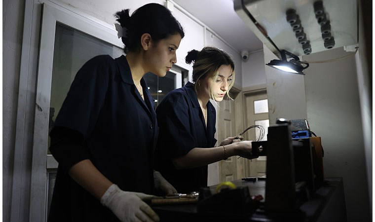 Mersin'de yaşayan 19 yaşındaki Aleyna Ülger ve 24 yaşındaki Yağmur Piliç, geçen yıl Akdeniz ilçesindeki kuyum atölyesinde çıraklığa başladı. Değerli taşlarla süslü olmayan altın işlemeciliği sadekarlığı öğrenen Ülger ve Piliç, azim ve gayretleri sayesinde 15 kişinin çalıştığı atölyenin sorumlusu oldu.