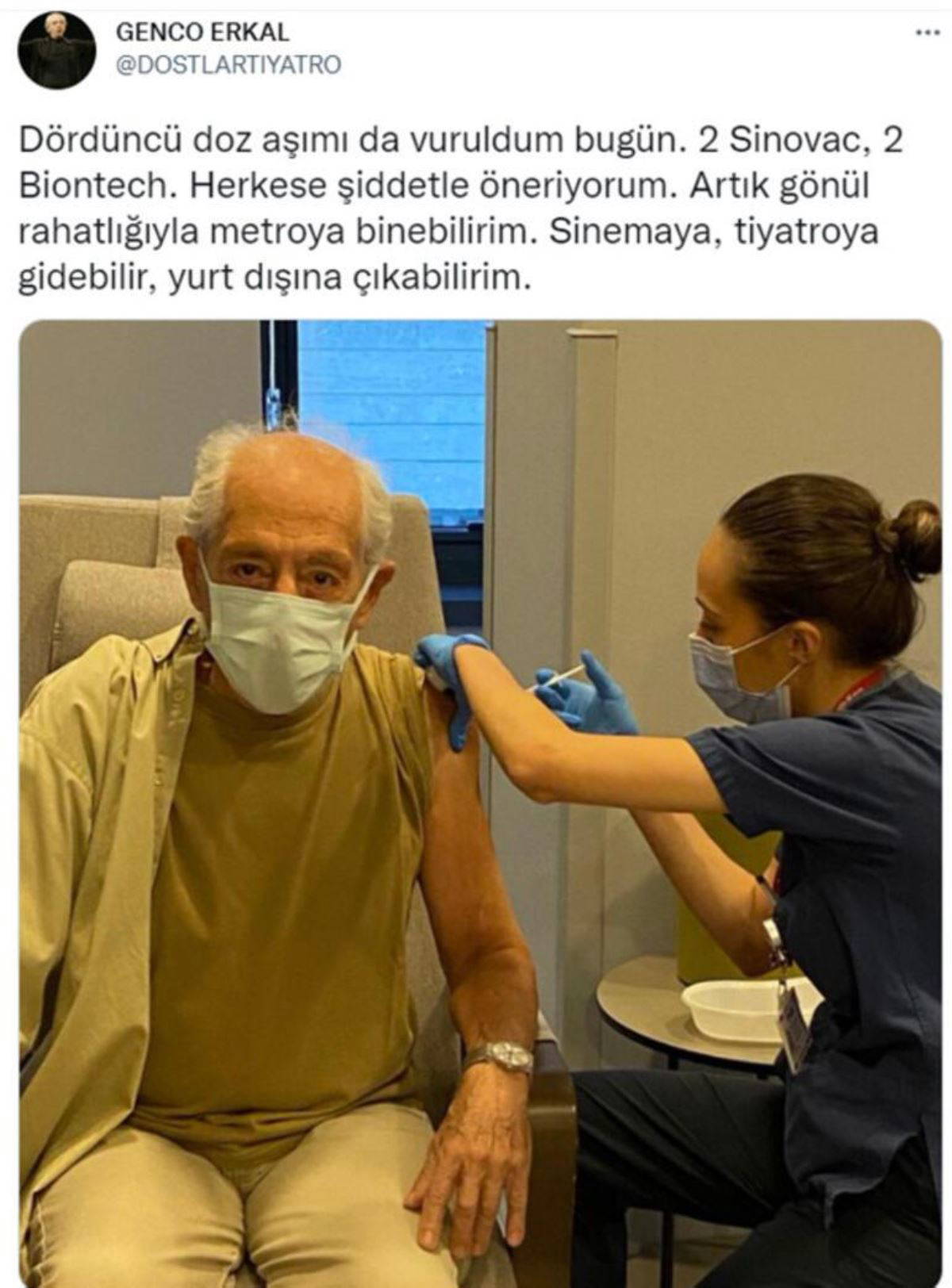 Son olarak 83 yaşındaki usta tiyatrocu Genco Erkal da dördüncü doz aşısını olduğunu duyurdu.