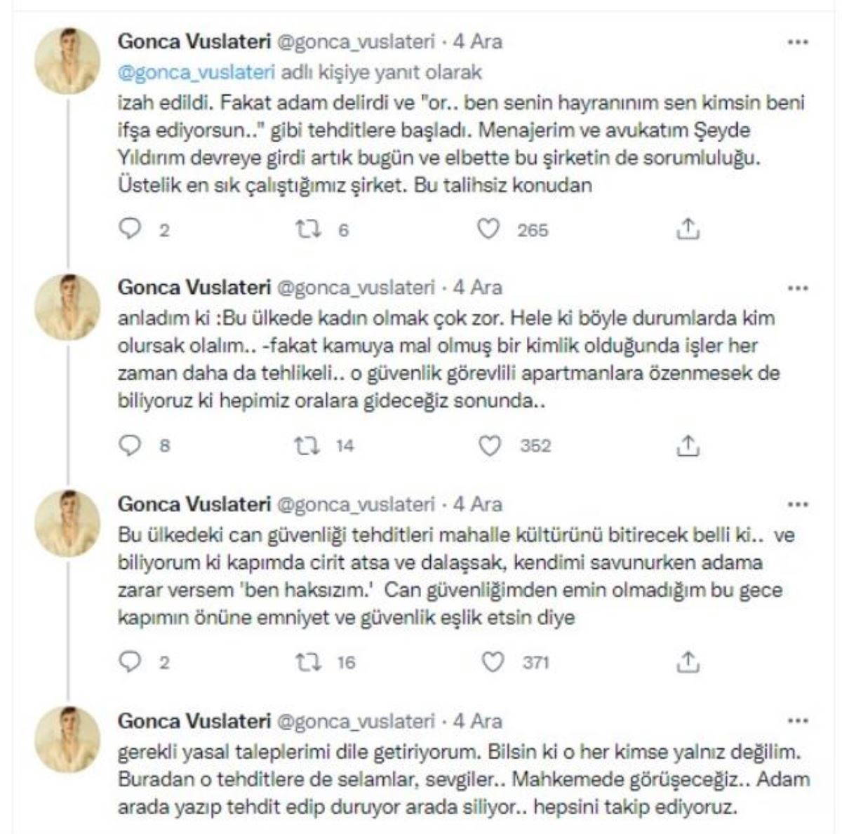 Konuyu yargıya da taşıdığını belirten Vuslateri, yaşadıklarını Twitter üzerinden anlattı.
