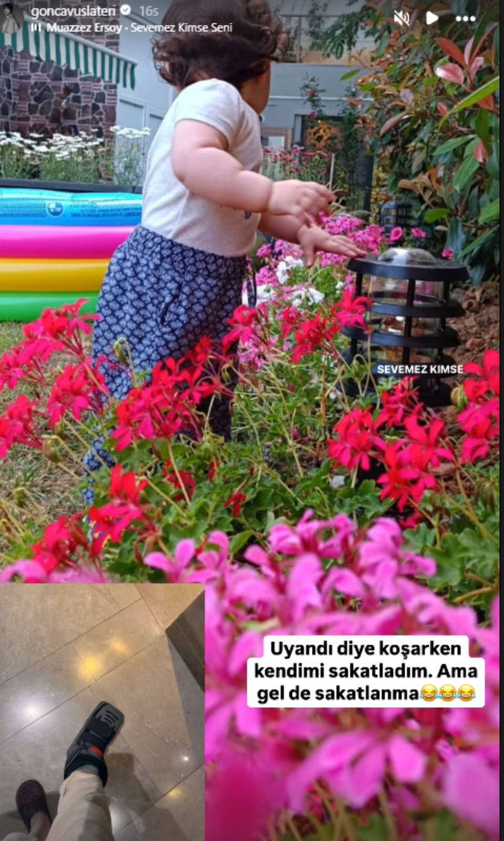 Mart 2024’te Levent Yaşar ile dünyaevine giren ve nisan ayında kızı Asya’yı dünyaya getiren Vuslateri, sosyal medya hesabından yaptığı paylaşımda, kızı uyanınca ona yetişmek için koşarken sakatlandığını açıkladı.