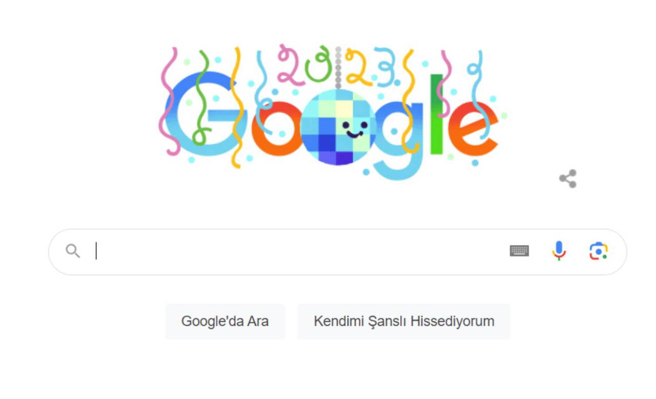 Yılbaşına özel hazırlanan doodle görselinde konfetiler yer alıyor.