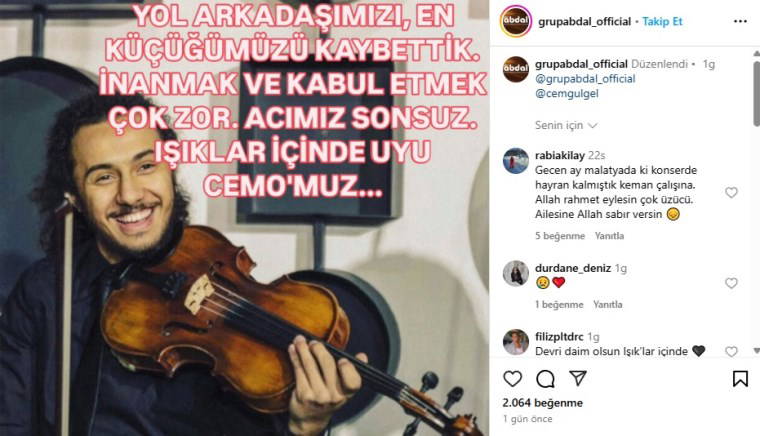 Grup Abdal’ın kemancısı Cem Gülgel, 23 yaşında hayatını kaybetti.
