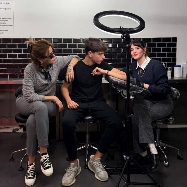 Paylaşımında "Ya babam kızarsa? Kızmaz kızmaz merak etme. Emin misin? Yes." notunu düşen Ergen, oğullarıyla birlikte çekilmiş birçok kareyi de sevenlerinin beğenisine sundu. Dövme stüdyosunda oğluyla birlikte poz vermeyi ihmal etmeyen Ergen’in bu paylaşımları kısa sürede büyük ilgi gördü.