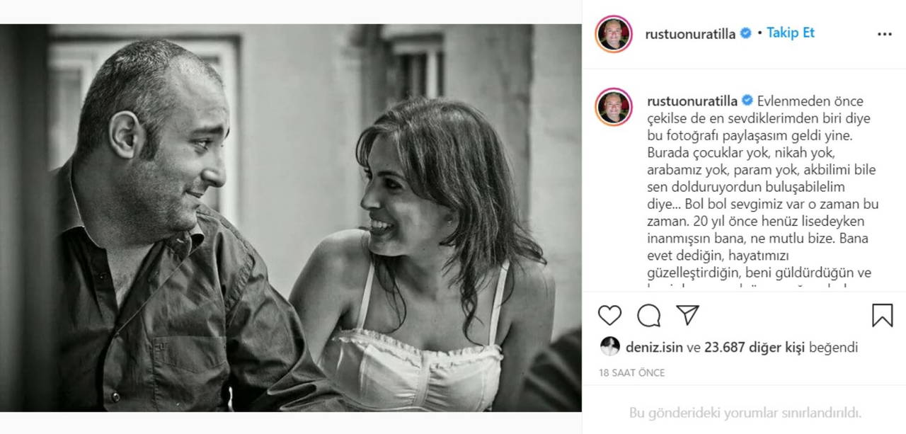 Sinem Ayyıldız ile 2014 yılında nikah masasına oturan, Show TV’de yayınlanan Güldür Güldür Show’un sevilen yüzlerinden olan Rüştü Onur Atilla, 7'inci evlilik yıl dönümlerinde, evlilik öncesi çekilmiş bir fotoğrafını sosyal medya hesabından paylaştı.