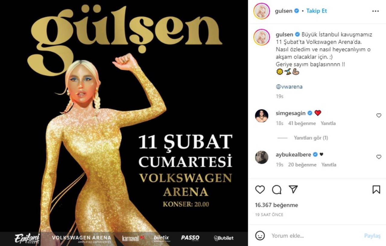 Gülşen, biletleri önceki gün satışa çıkan konserle ilgili paylaşımında şunları söyledi: