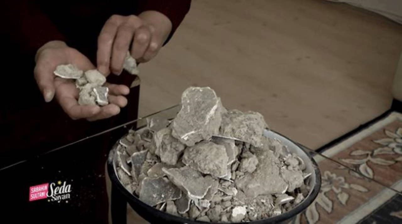 Köyden moloz getirttiğini söyleyen kadın, "Buradaki topraklar değil. Köyde duvarlardan söküp getirttiğim topraklar. Köyde kardeşlerimin eski toprak evleri var. Onların duvarlarında var bunlar başka yerlerde yok. Memleketten getirttirdim. Eşim istedi kargoyla yolluyorlar. Ne için diye sorduklarında ilaç diyorum. Kendime de yediremiyorum yani toprak yememi. Söylemek istemiyorum. Birisinin dizleri ağrıyor, dizlerine ilaç yapacakmışlar diye istedi öyle geldi" ifadelerini kullandı.