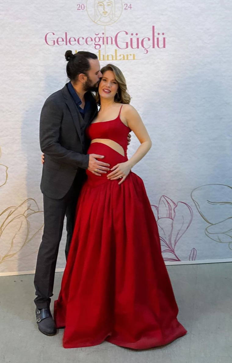 Biricik, kırmızı elbisesiyle etkinlikte boy gösterdi.