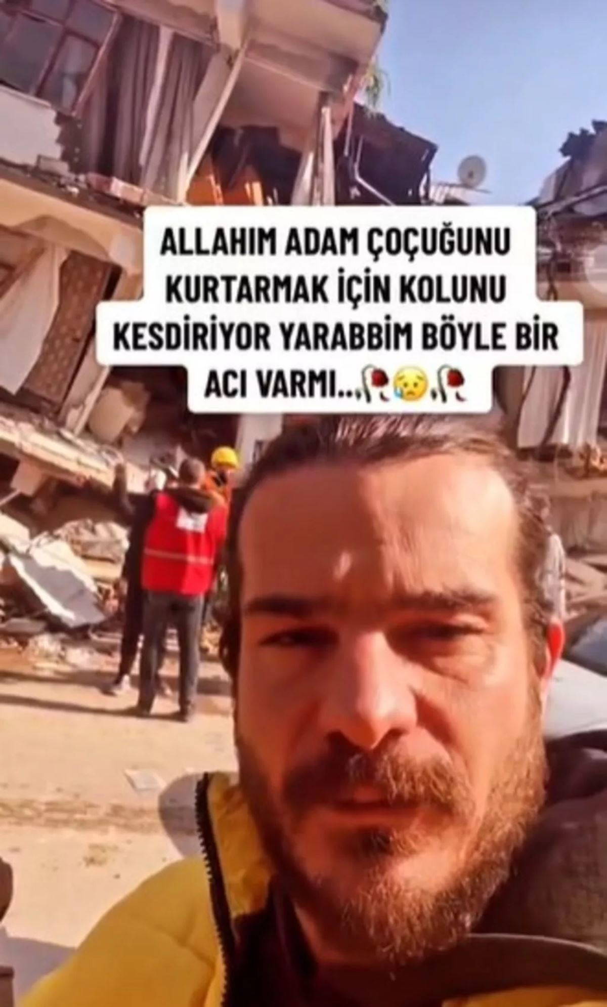 Yaşanan acı dolu olayı anlatan Hatipoğlu çektiği videoda, “Şu binanın içinde bir tane adam var. Arkasında da bebek var. Adamın kolu enkazın altında kalmış ve birazdan kabul etti kolunu kesecekler, arkasındaki bebeğine ulaşmak için. Burada çok büyük bir olay yaşanıyor. Burası televizyonda gördüğünüz gibi değil. O yüzden lütfen yardımlarınızı yapın. Çok önemli, lütfen rica ediyorum. Özellikle Hatay’a Antakya’ya… Çünkü her yer yıkılmış vaziyette. Her yer… Bunun açıklaması yok. Çok feci bir durum” şeklinde konuştu.