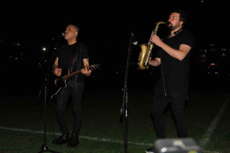 Sonrasında yeşil sahanın kıyısına inerek sevilen şarkılarını solo olarak seslendirmeyi sürdürdü. Genç bir müzisyeni kırmayıp birlikte şarkı okuyan Haluk Levent’e tribünden ayran da ikram edildi. Misket Eller Kadın Girişimi Kooperatifi Başkanı Şükran Bozkurt’un getirdiği ayranı içip teşekkür eden sanatçı, şehre büyük bir konser vermek için tekrar geleceğini söyledi.