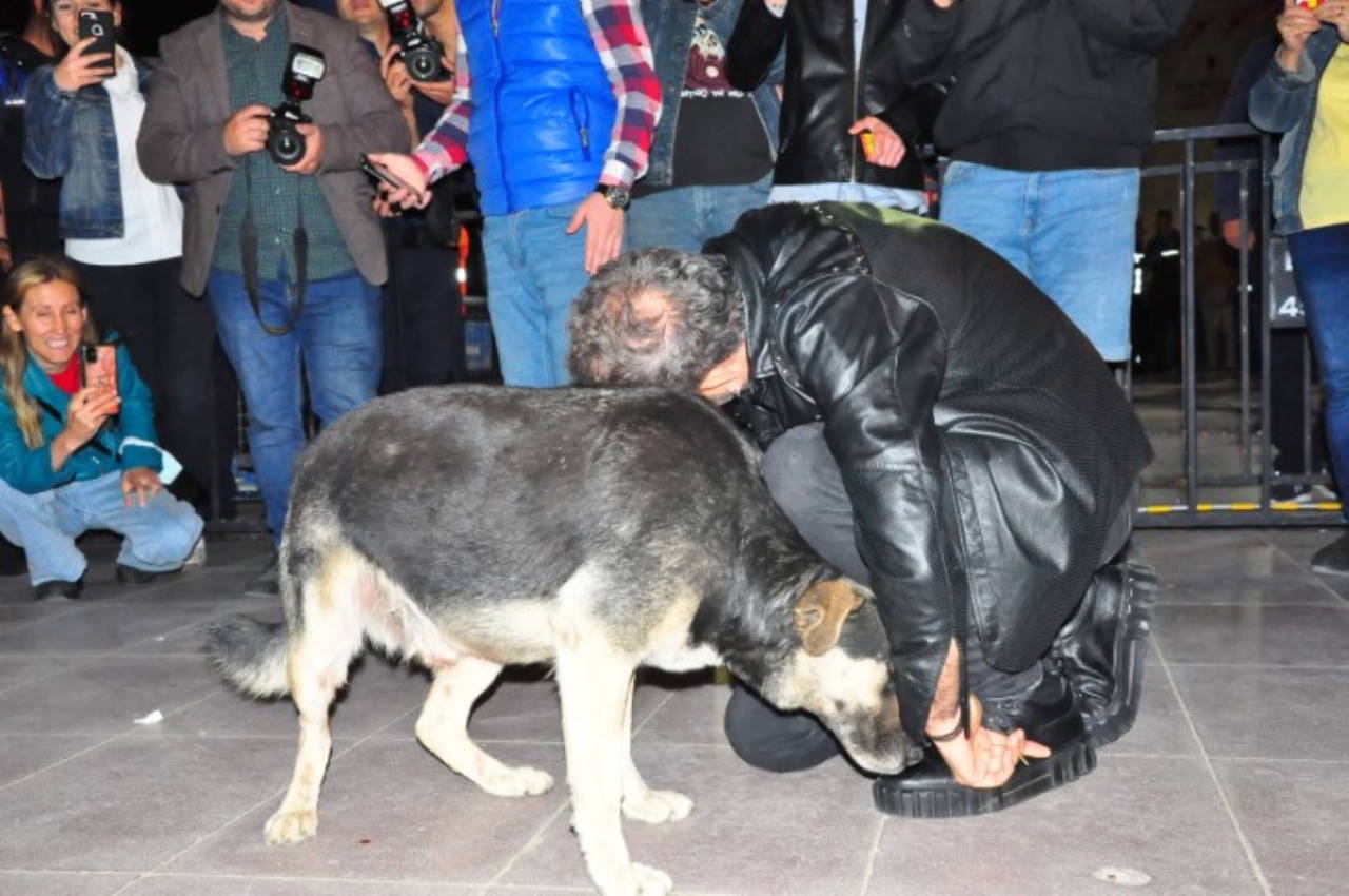 Konser alanına gelen sokak köpeğine sarılarak, köpekle birlikte yere uzanan ve hayranlarının içine dalan Haluk Levent, Manisalılara unutulmaz bir gece yaşattı.