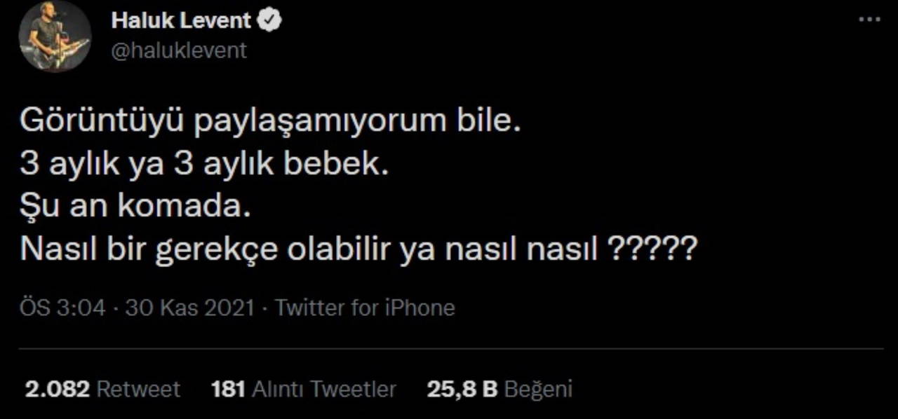 Levent, sosyal medyadan yaptığı paylaşımda, "Görüntüyü paylaşamıyorum bile. 3 aylık ya, 3