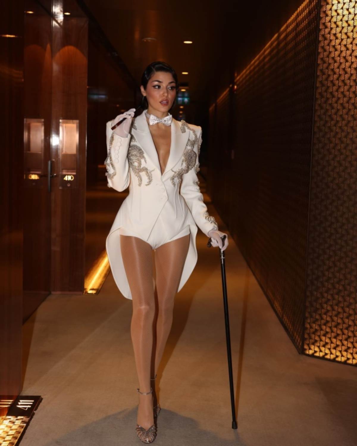 Partide iki farklı kostüm tercih eden Erçel güzelliğiyle