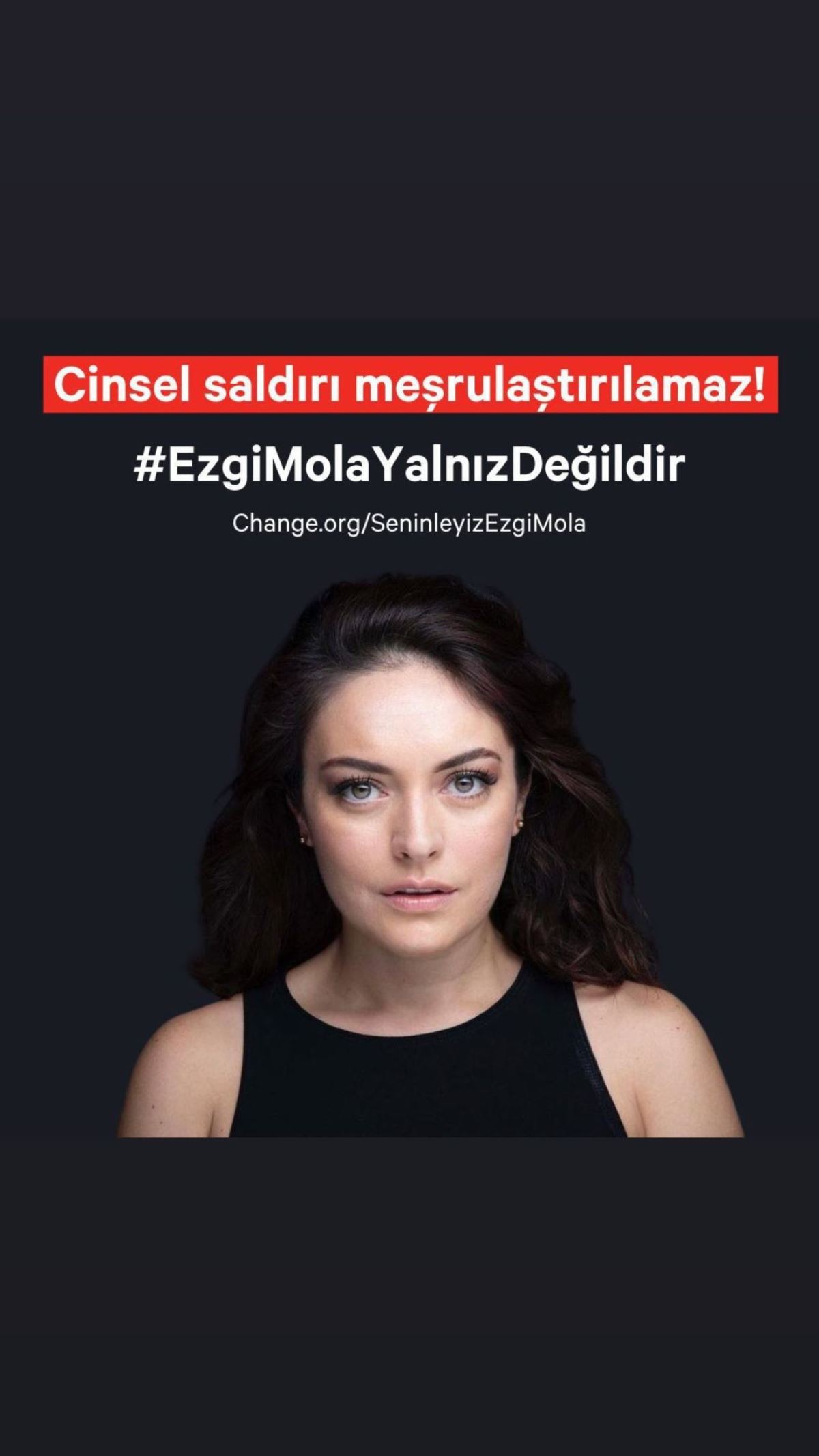 Erçel yaptığı paylaşımda, "Cinsel saldırı meşrulaştırılamaz. Ezgi Mola yalnız değildir" ifadelerini kullandı.