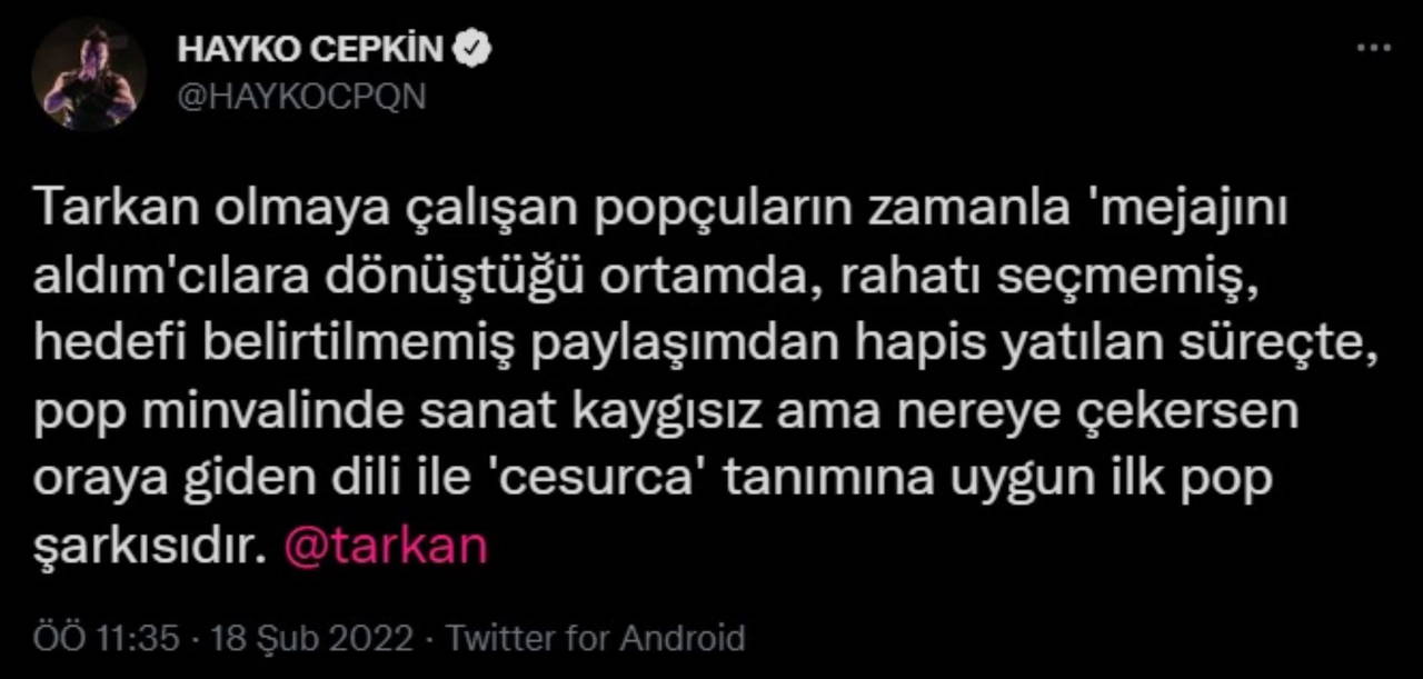 HAYKO CEPKİN’DEN TARKAN PAYLAŞIMI