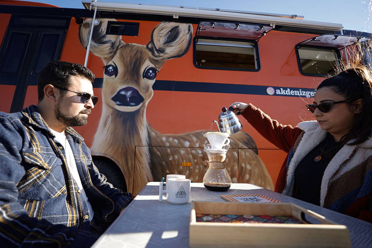 Kampta çadır kurdukları sırada tanışan Mert ve Yağmur Şahinoğlu Kaybaki, bir süre sonra hayatlarını birleştirmeye karar verdi. Nişanlı oldukları dönemde satın aldıkları otobüsü, içini yaptırarak "Pera" adını verdikleri karavana dönüştüren genç çift, 6 aydır "küçük yuvalarında" hayatı paylaşıyor.