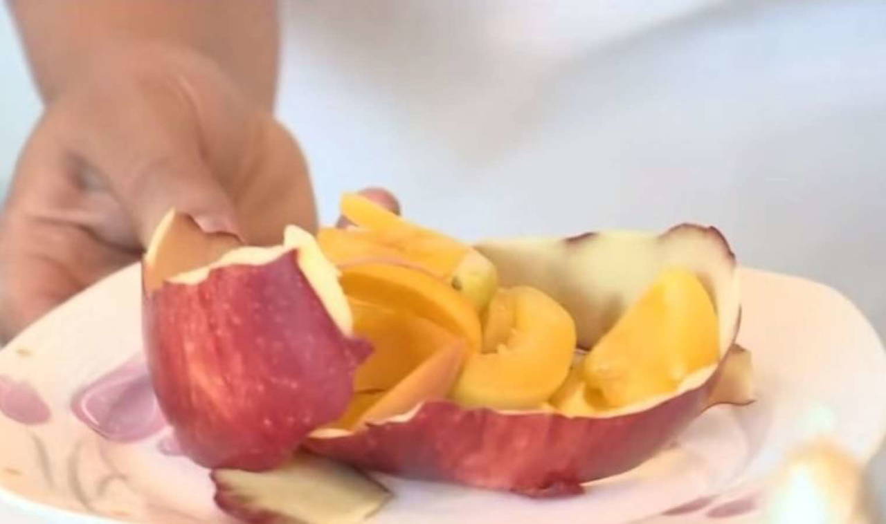- Kırmızı sert elmanın kabuğunu ince bir şekilde soyun,