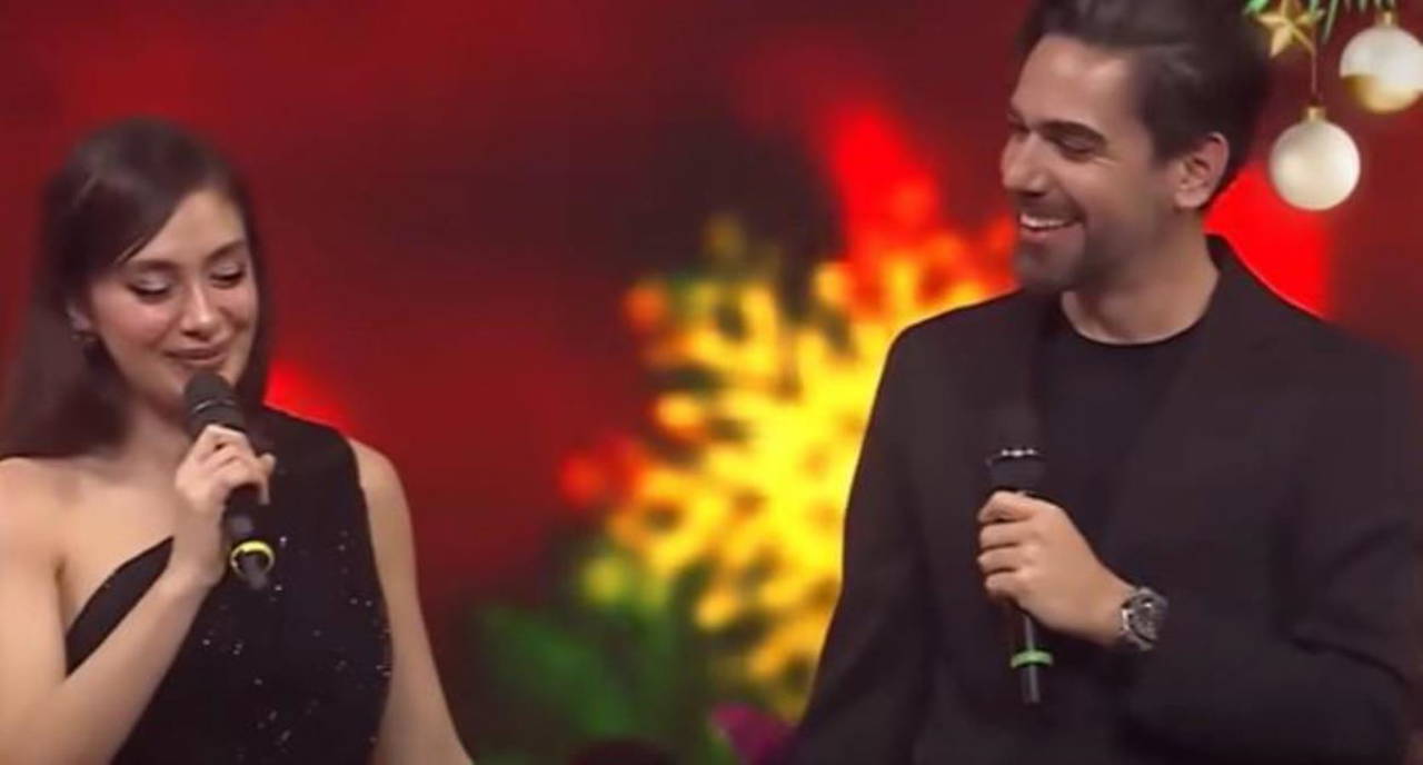 Neslihan Atagül ve Kadir Doğulu çifti TV8 ekranlarında yayınlanan O Ses Türkiye Yılbaşı Özel programında sahneye çıkarak 'Bal Böceği' şarkısını söyledi.
