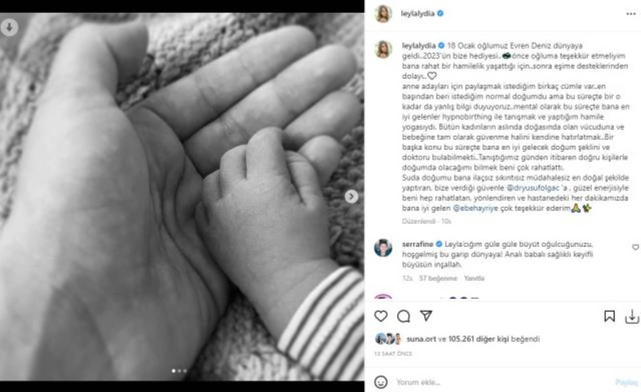 Geçen yıl Almanya'da Ceyhun Ergin ile evlenen tescilli güzel ve oyuncu Leyla Lydia Tuğutlu, anne oldu. Çift, çocuklarına Evren Deniz adını verdi. Suda doğum yöntemini tercih eden güzel oyuncu, sosyal medya hesabından bir paylaşım yaparak anne adaylarına seslendi.