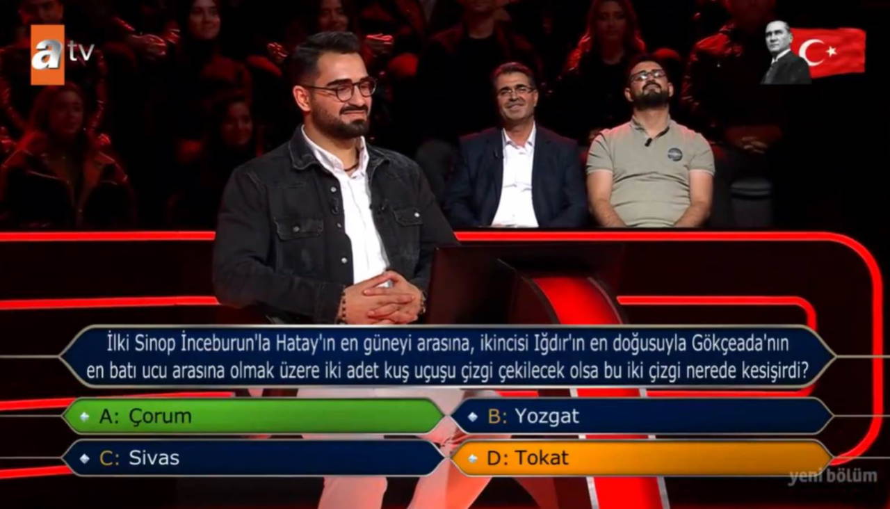 Yarışmacı uzun süre düşündükten sonra cevabını Tokat yani D şıkkından yana kullandı.