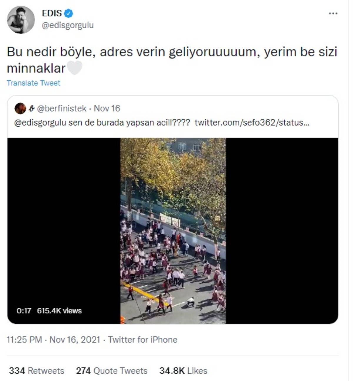 Sefo'nun paylaşımı sonrasında yine okulda çalan 'Martılar' şarkısıyla dans eden öğrencilere şarkıcı Edis de kayıtsız kalmadı.