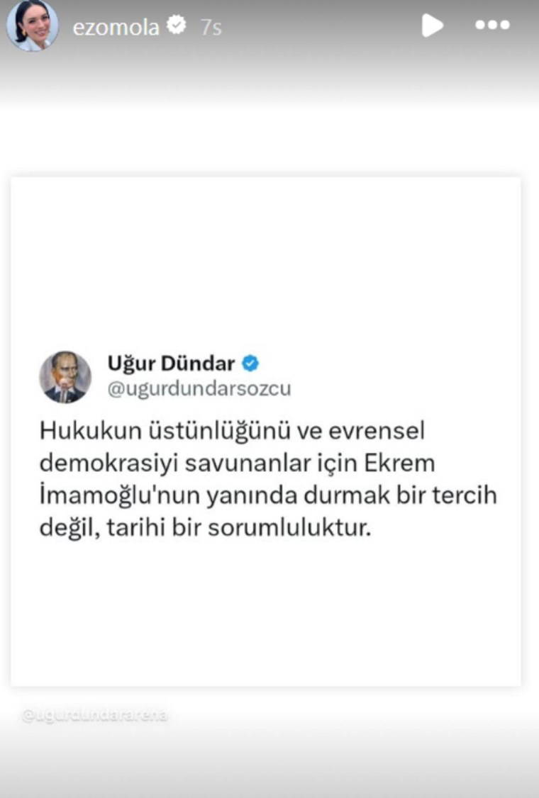 Sosyal medya paylaşımlarıyla sık sık gündeme gelen Ezgi Mola, önce Ekrem İmamoğlu'nun gözaltına alınmasını Uğur Dündar’ın paylaşımıyla eleştirirken, ardından yaşanan erişim sorunlarına tepki gösterdi.
