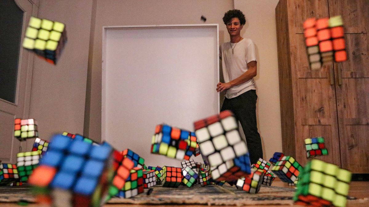 bu sırada sıkıntıdan evde bulduğu rubik küpü çözmeye çalıştı. Bir süre rubik