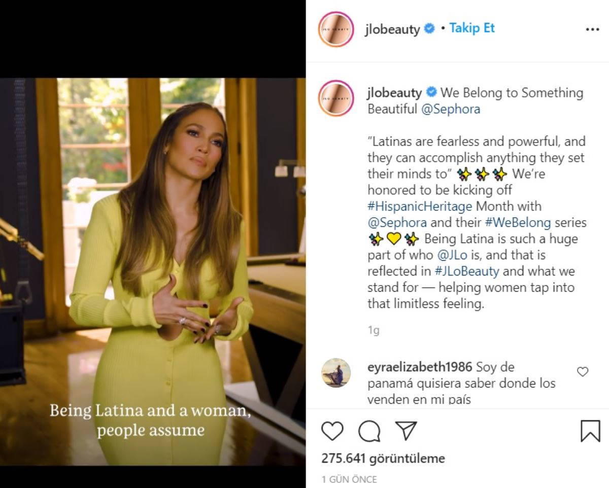 Dünyanın en ünlü pop yıldızlarından Jennifer Lopez’in kozmetik markası JLO Beauty'nin Instagram