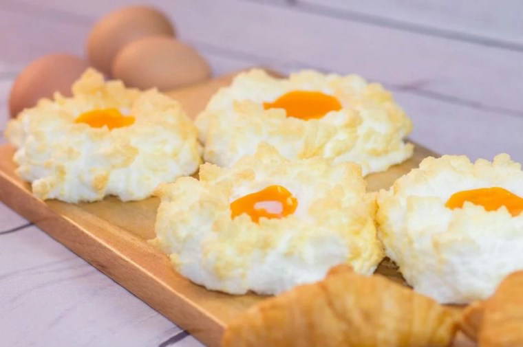 Yumurtaların beyazını bir kaba, sarılarını da ayrı bir kaba ayırın. Beyaz ve sarıların birbirlerine karışmamasına özellikle özen gösterin. Yumurta beyazların içerisine tuz atın ve çırpıcı yardımıyla beyaz bir köpük haline gelene kadar çırpın. Yağlı kağıt serili fırın tepsisine, spatula yardımıyla orta boy bezeler halinde yumurta beyazlarınızı aktarın. Ortalarında boşluk oluşturun. Önceden ısıtılmış 190 derecede üzeri hafif renk alana kadar 15 dakika pişirin. Fırından çıkarıp ortasındaki boşluklara yumurta sarılarını dikkatli bir şekilde aktarın. Fırında 5 dakika daha pişirin. Pişince çıkarıp sıcak sıcak servis edin. Afiyetler olsun !