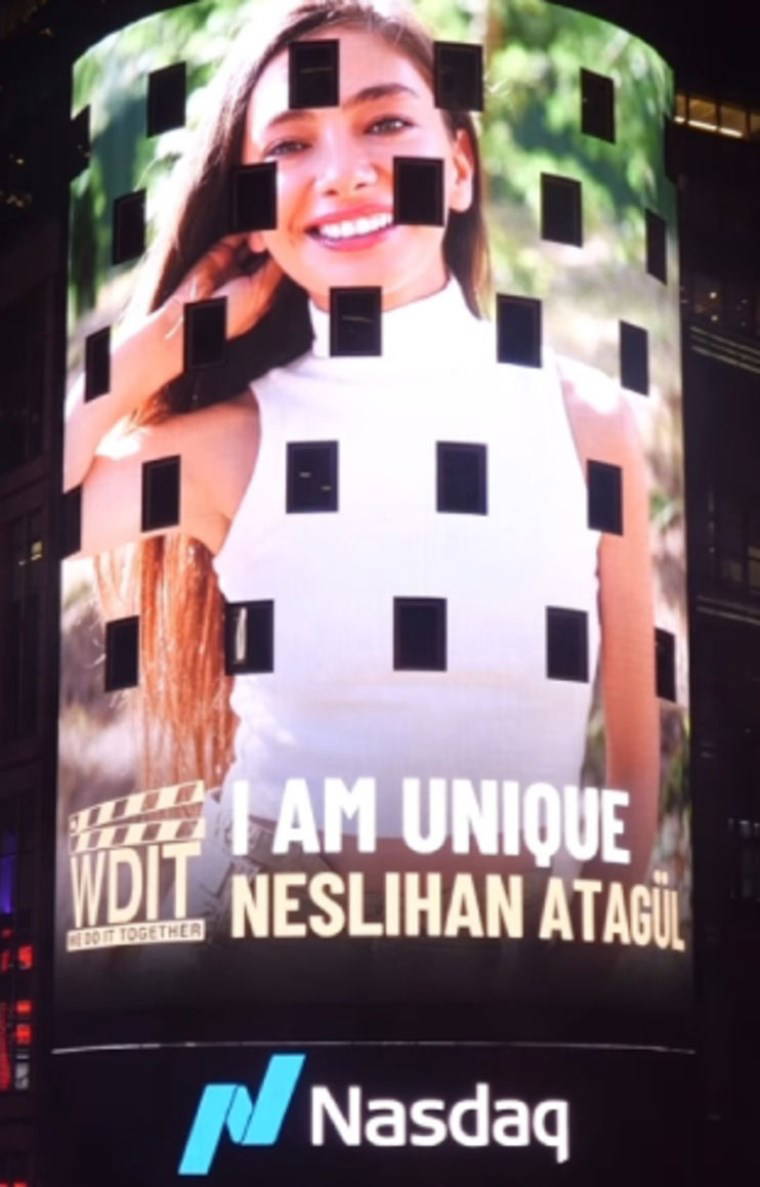 New York Times Meydanı’ndaki Nasdaq Kulesi'nde sergilenen ve kadınların küresel nesneleştirme kültürüne meydan okumayı amaçlayan 'I AM' kampanyasında yer alan Neslihan Atagül, kampanyaya katılan tek Türk oyuncu oldu. 'I AM' kampanyasında yer alan her kadın, "Ben" ifadesiyle başlayan cesur bir beyanla kadınların nesneleştirilmesine karşı güçlü bir duruş sergiliyor. Neslihan Atagül ise kampanyada, "Ben benzersizim" diyerek kadınların gücüne vurgu yaptı.