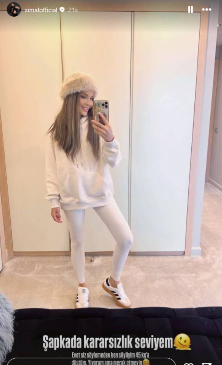 Güler yüzlü bir fotoğrafını paylaşan Şimal, "Evet siz söylemeden ben söyleyeyim, 45 kilograma düştüm. Yiyorum ama merak etmeyin" ifadelerini kullandı.