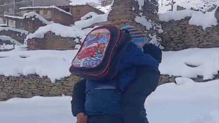 Van’ın Gevaş ilçesinde Cihan Yakut isimli öğretmen, karda yürüyemeyen öğrencisini evine kadar sırtında taşıdı.