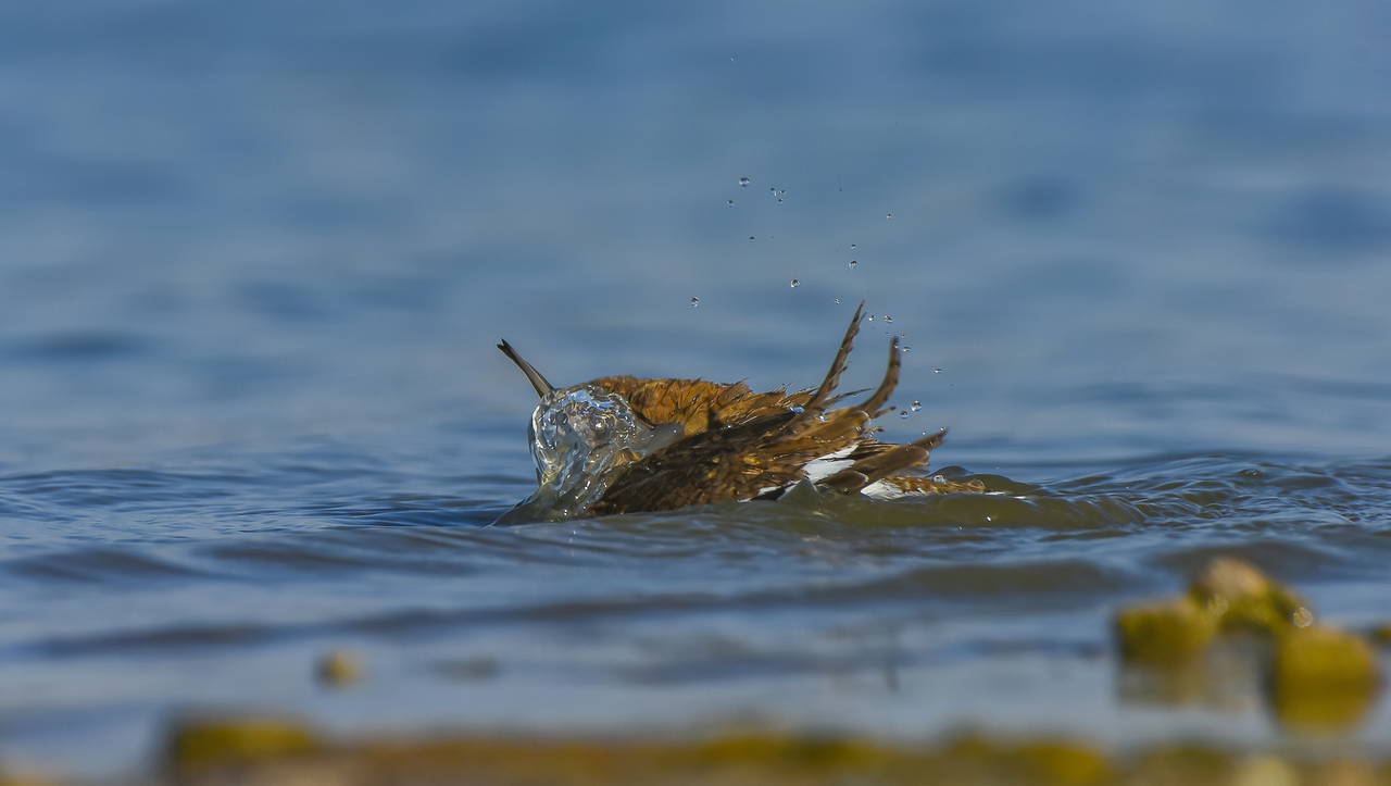 Dicle Üniversitesi yerleşkesinde bulunan ve avcı baskısının az olduğu Kabaklı Göleti'ndeki kuşlar, kavurucu sıcağın etkisinden korunmak için gün boyu suyun içinde kalıp, serinlemeye çalışıyor.