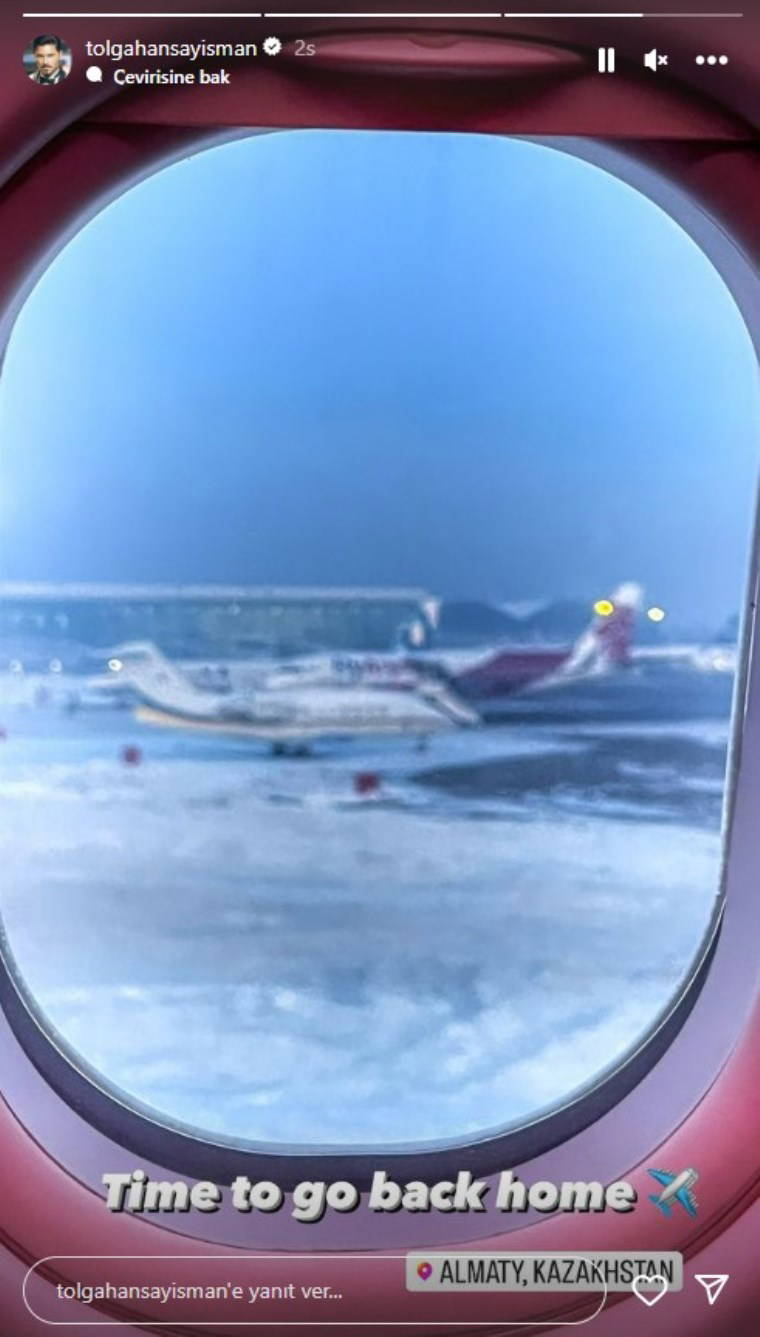 Ülkeye dönerken uçak içinden de paylaşım yapan oyuncu "Eve dönme zamanı" dedi.