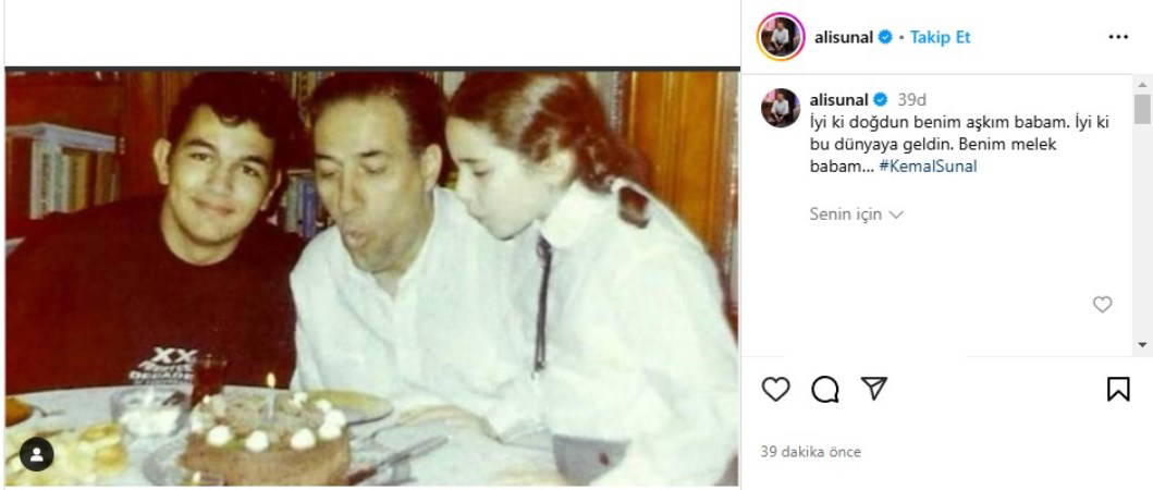 Usta oyuncunun oğlu Ali Sunal, babasının doğum gününe özel duygusal bir paylaşım yaptı. Ali Sunal, babası Kemal Sunal ve kardeşi Ezo Sunal ile doğum günü kutladıkları bir fotoğrafı paylaşarak, "İyi ki doğdun benim aşkım babam. İyi ki bu dünyaya geldin. Benim melek babam…" ifadeleriyle babasına olan sevgisini dile getirdi.