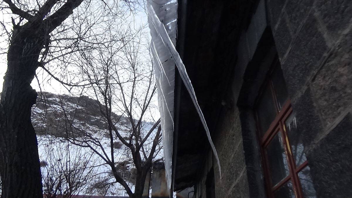 Kars’ta soğuk hava hayatı olumsuz etkiledi. Termometrelerin eksi 22’yi gösterdiği Kars’ta soğuktan işyerlerinin kilitleri ve pencereleri dondu, soğuktan çatılarda buz sarkıtları oluştu.