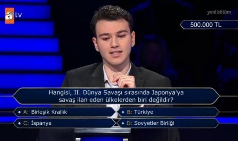 ATV'nin izleyiciyi ekrana kilitleyen popüler yarışma programı "Kim Milyoner Olmak İster", her hafta olduğu gibi bu hafta da heyecan dolu bir bölümle ekranlara geldi. Programın son bölümünde ünlü oyuncu Kenan İmirzalıoğlu'nun yarışmacıya yönelik sorduğu soru, izleyicilerin merak konusu oldu. İşte cevabı merak edilen o soru...