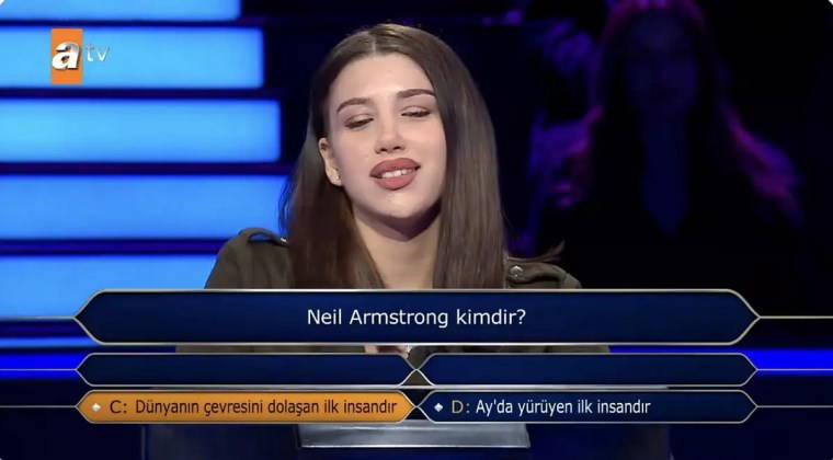 Programın son bölümünde bir yarışmacıya "Neil Armstrong kimdir?" diye soruldu.