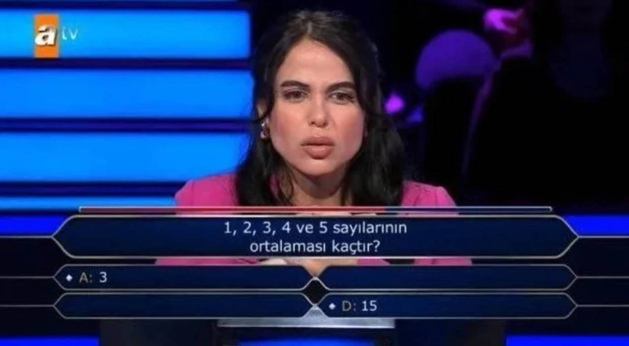 Yarışmacıya dördüncü soru olan, "1, 2, 3, 4, ve 5 sayılarının ortalamaları kaçtır?" sorusu soruldu. Şıklarda, A: 3, B: 6, C: 9 ve D: 15 yer alıyordu.